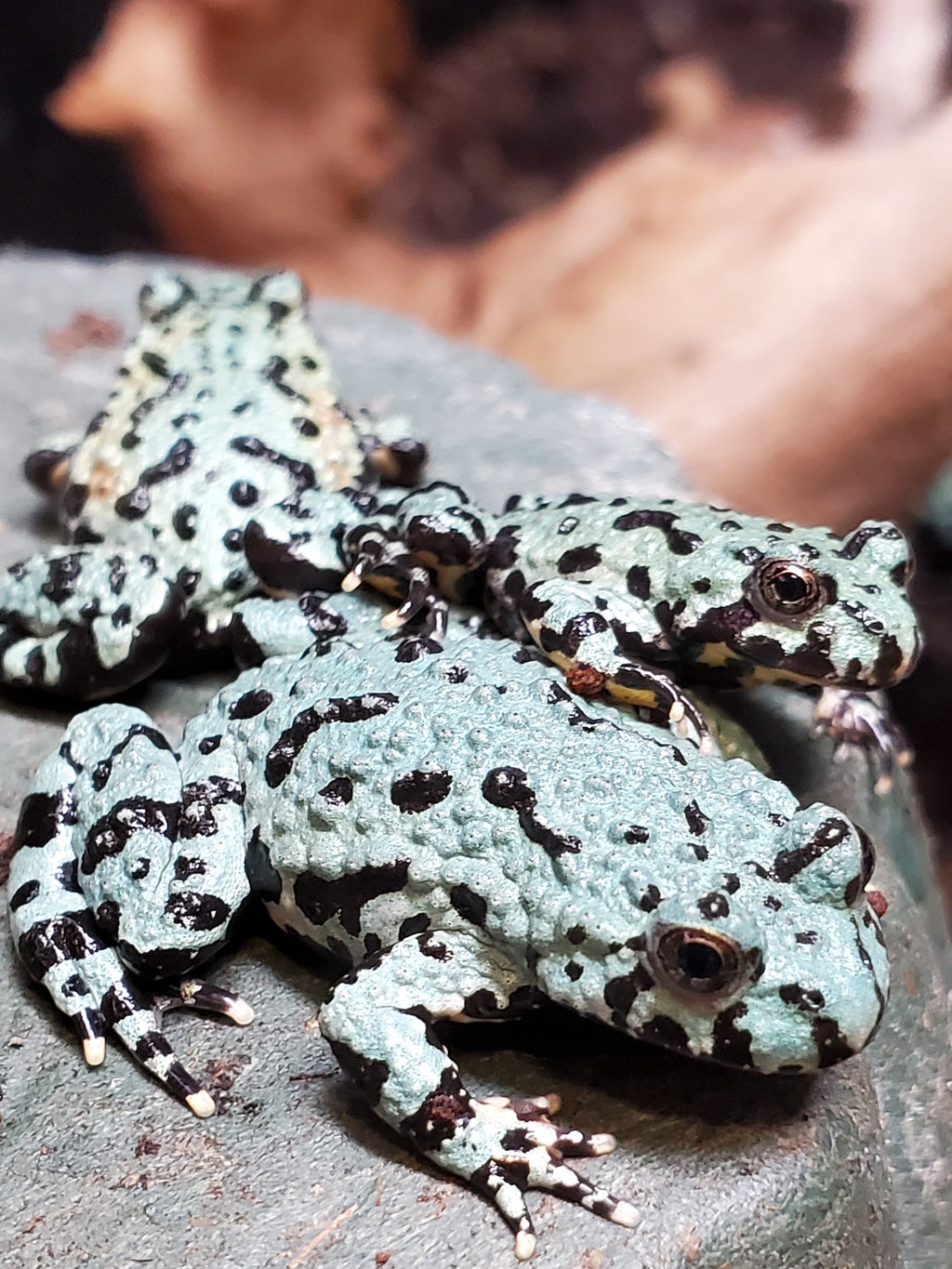 Spectacular European captive bred Oriental Fire-bellied toads (Bombina orientalis) that come in a range of blue colours from a seafoam green to a bright blue.