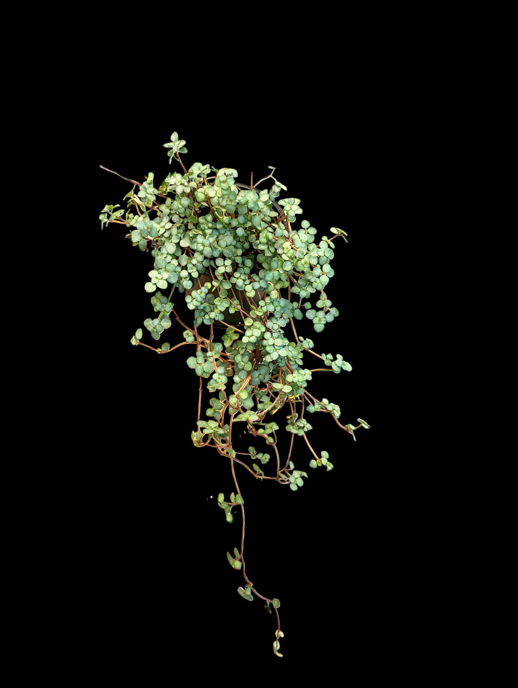 Powder blue version of a popular creeping plant. Pilea glauca is the species name